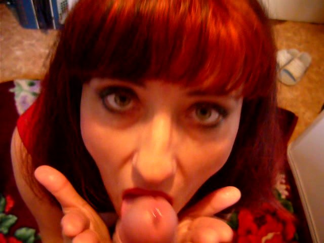 Red-haired lustful bitch gives a blowjob. Trying to hide that she doesn't like it. But it seems that nobody cares.